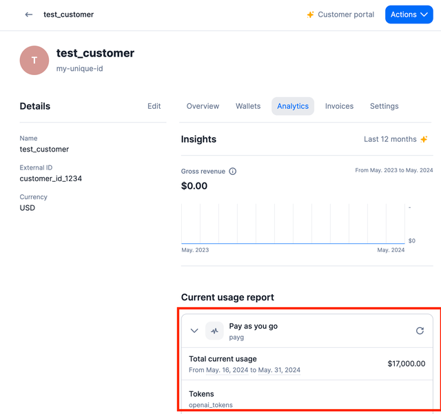 - Set the id you want to bill for (customers, internal users, teams)